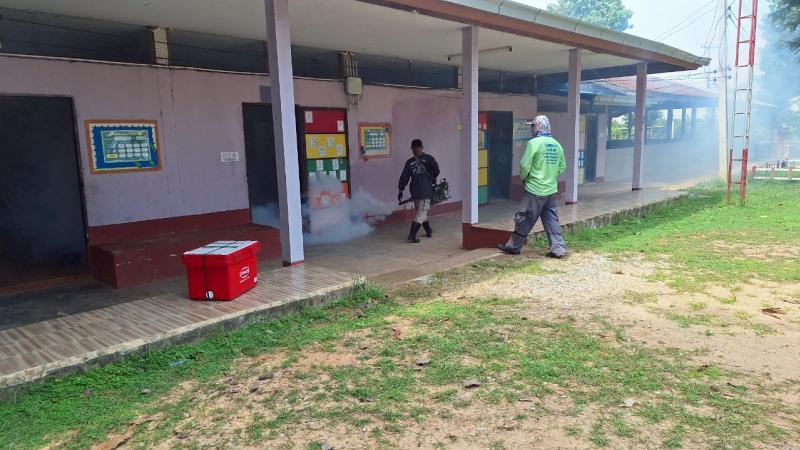 รายละเอียด : สนับสนุนออกพ่นหมอกควันบริเวณในห้องเรียนและบริเวณรอบ ๆ โรงเรียนบ้านท่าลาดและโรงเรียนบ้านท่าลาดสาขาแหลมทอง เพื่อป้องกันโรคไข้เลือดออก