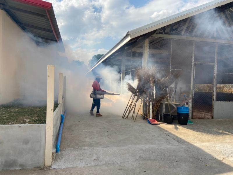 สนับสนุนพ่นฆ่าเชื้อโรคและพ่นหมอกควันโรงเรียนดงง่ามนางาม